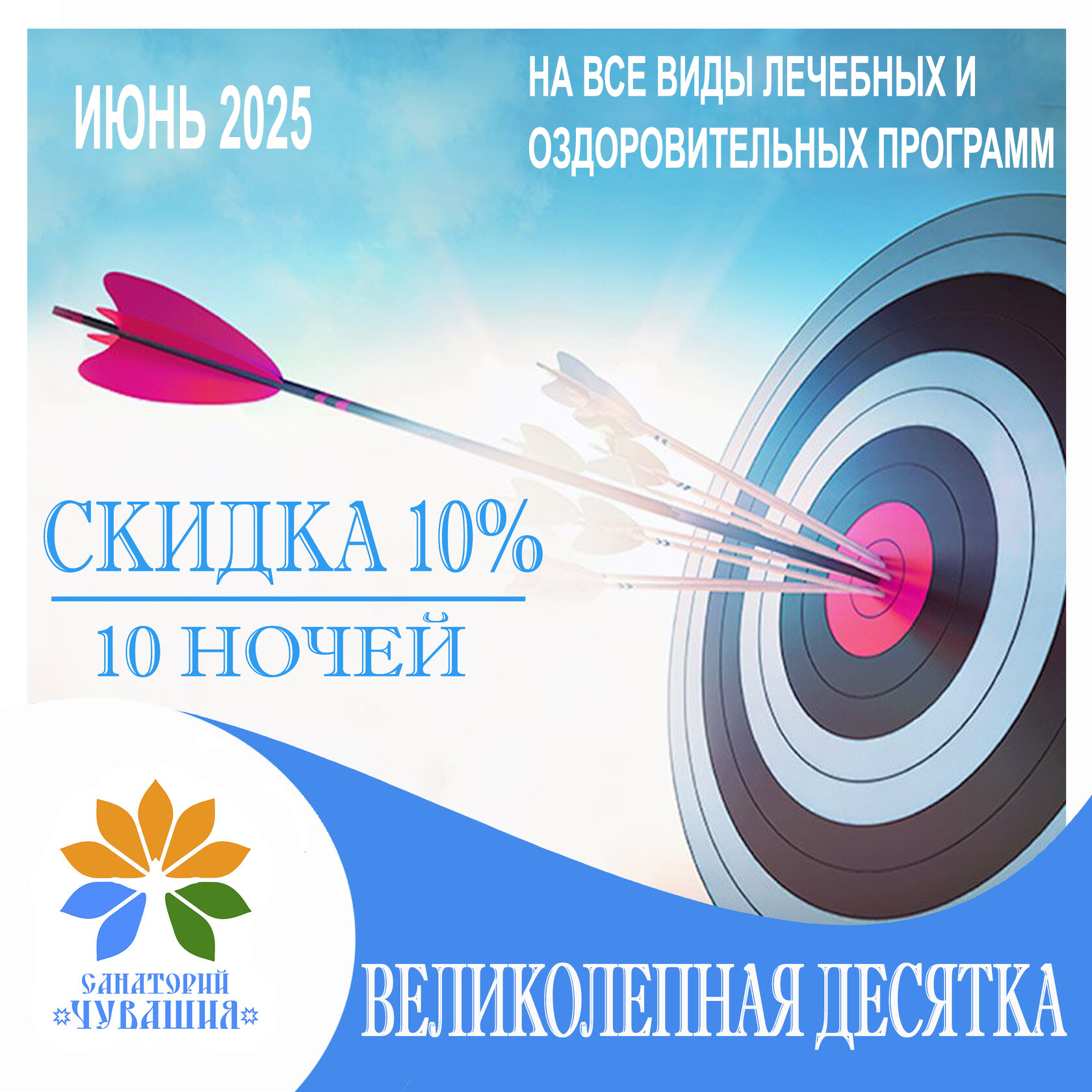 Приобретайте путевки по любой программе продолжительностью от 10 ночей на период с 1 по 15 июня 2025 года и получите скидку 10 процентов.
